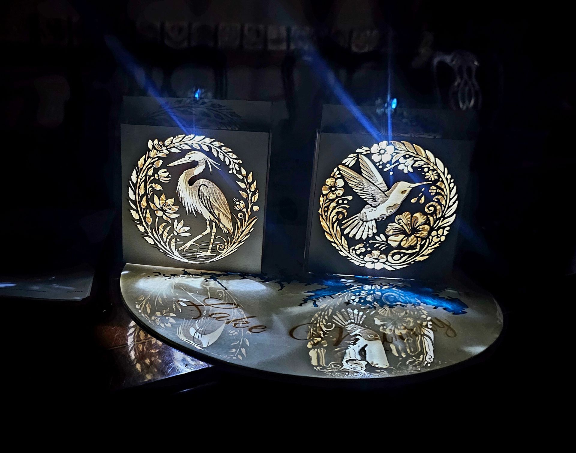 The beauty and fun of plexiglass and light, allowing you to match the light color with your mood. This is an example of the romance theme.