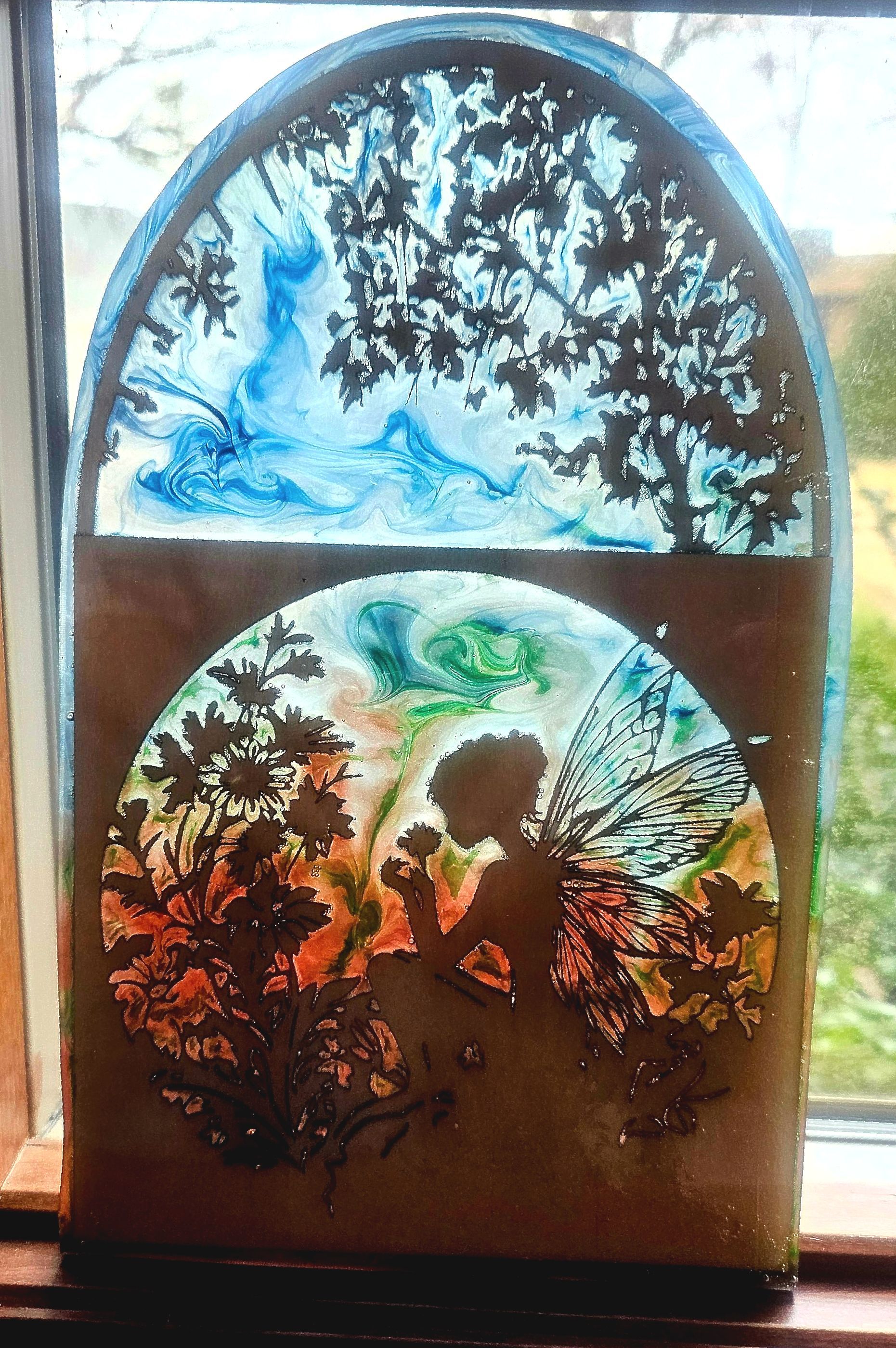I leveraged the amazing effects one can get using resin to create the right backdrop to a wood cutting and engraving piece to get the right feel.